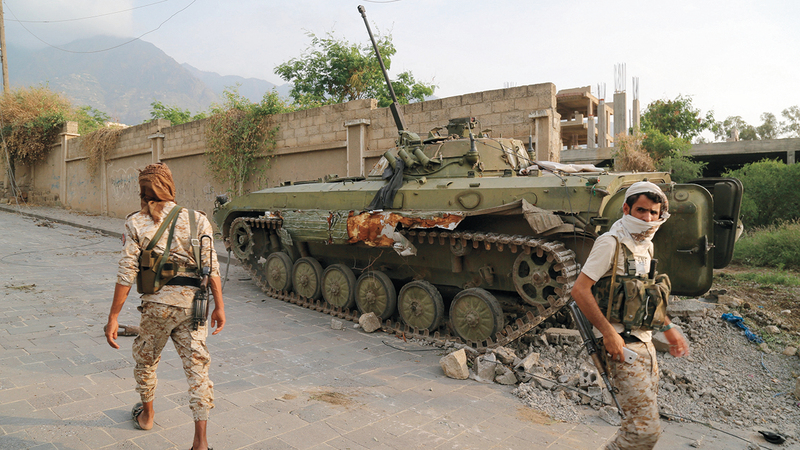 مقاتلان من قوات الشرعية اليمنية خلال عمليات عسكرية ضد الميليشيات. أرشيفية