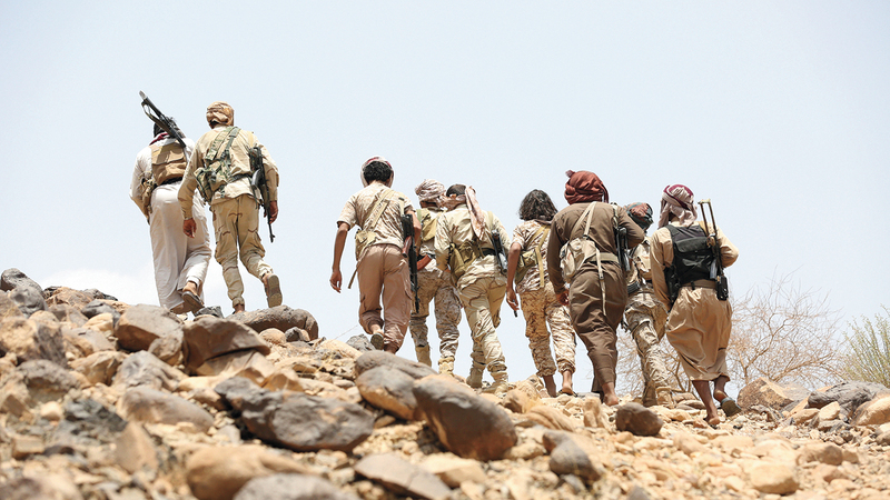 جنود من الشرعية اليمنية بإحدى مناطق جبهة المخدرة في محافظة مأرب. أرشيفية