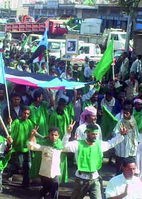 وكانت معظم مدن جنوب اليمن شهدت بداية الأسبوع الجاري تظاهرات شارك فيها الآلاف ورفعت رايات خضر وشعارات مطالبة بـ«فك الارتباط» مع شمال اليمن، والعودة الى دولة جنوب اليمن التي كانت مستقلة قبل .1990