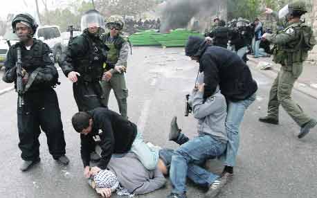 شرطة الاحتلال تمارس العنف والتنكيل بالمتظاهرين. رويترز