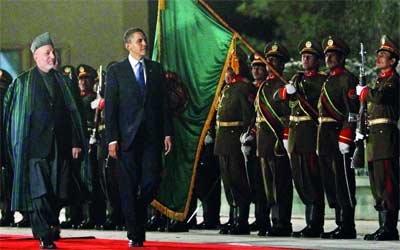 وصل الرئيس الأميركي باراك اوباما، إلى كابول، أمس، في زيارة مفاجئة، هي الأولى له إلى أفغانستان منذ تسلمه مهامه، أجرى خلالها لقاء مع نظيره الأفغاني حامد كرزاي، كما تفقد القوات الأميركية العاملة في أفغانستان.