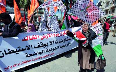 استشهد فتى فلسطيني وأصيب 11 من الفتية والأطفال بينهم طفل حالته خطيرة، بنيران الجيش الاسرائيلي، خلال تظاهرات لإحياء ذكرى يوم الأرض في قطاع غزة. وفيما هدد الاحتلال بعملية عسكرية في القطاع، وفيما دعت حركة المقاومة الاسلامية (حماس) الى المواجهة، أكدت حركة فتح تمسكها بـ«المقاومة السلمية»، على الأرض جنبا إلى جنب مع الحراك السياسي الرافض لاستئناف المفاوضات في ظل الاستيطان.