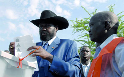 أدلى النائب الأول للرئيس السوداني وزعيم الحركة الشعبية لتحرير السودان سالفا كير المرشح لرئاسة حكومة الجنوب بصوته في وسط مدينة جوبا، امس، حيث كان اول من ادلى بصوته في مركز الاقتراع القريب من مكتبه في عاصمة الجنوب المتمتع بحكم شبه ذاتي، وانتظر 20 دقيقة تحت شجرة حتى فتح مركز الاقتراع. ويتعين على ناخبي الجنوب أن يملأوا 12 بطاقة اقتراع.