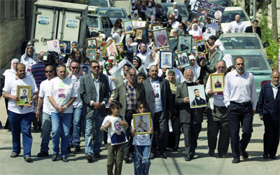 فلسطينيون خلال تظاهرة في القدس المحتلة تطالب بإطلاق الأسرى. أ.ف.ب