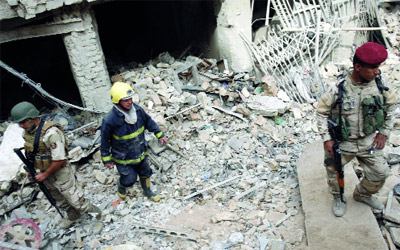 جنود عراقيون في موقع انفجار قنبلة وسط بغداد. إي.بي.إيه