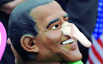 متظاهرون مؤيدون للهجرة يسخرون من أوباما. أ.ب