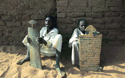 طفلان في معسكر زمزم في الفاشر يحفظان آيات من القرآن الكريم. غيتي
