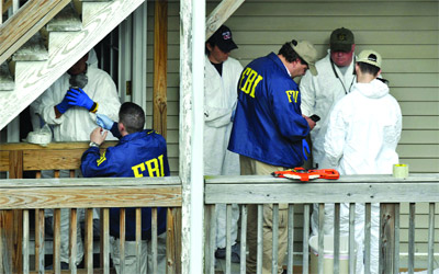 عناصر من مكتب التحقيقات الفيدرالي يفتشون المنزل الذي عاش فيه فيصل شهزاد في كونكتيكت. أ.ب