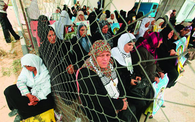 فلسطينيات يتظاهرن قرب «إريز» للإفراج عن ذويهن المحتجزين في إسرائيل. د.ب.أ