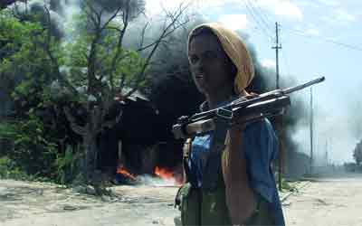 مسلح صومالي قرب سوق بكارا حيث وقع أحد الانفجارات. رويترز