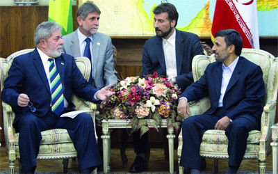 وتعهد دا سيلفا ونجاد بتعزيز العلاقات بين بلديهما في المحادثات، وجاء في بيان على الموقع الالكتروني للرئيس الايراني ان نجاد شكر موقف الرئيس البرازيلي الداعم لحقوق الايرانيين والموقف الذي تبناه حيال تحسين العالم. وأضاف البيان أن الحقيقة هي ان بعض الدول التي تهيمن على المراكز الاعلامية والاقتصادية والسياسية في العالم لا تريد للدول الاخرى ان تتقدم، ولكن معا، نستطيع التغلب على هذه الظروف غير المنصفة ونحدث التغييرات. والتقى لولا لأول مرة كذلك المرشد الاعلى للجمهورية الاسلامية آية الله علي خامنئي الذي دان «الضجة» التي تحدثها الدول الغربية الكبرى حول زيارة دا سيلفا. ونقل التلفزيون الرسمي عن خامنئي قوله ان «قوى الاستكبار وعلى رأسها اميركا غير سعيدة بالتعاون بين بلدين مستقلين».