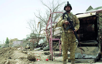 جندي عراقي في موقع تفجير الخالص. رويترز