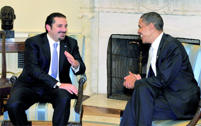 تطرق الرئيس الأميركي باراك أوباما، أمام رئيس الوزراء اللبناني سعد الحريري، إلى «التهديد» الذي يمثله نقل اسلحة الى لبنان في انتهاك لقرارات الامم المتحدة، فيما أبلغ الحريري الرئيس الاميركي، بأن هناك إحباطا عربيا منتشرا إزاء جهود السلام في الشرق الاوسط.