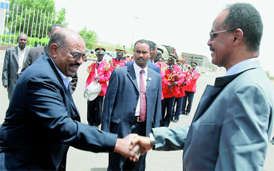 البشير لدى استقباله إسياس أفورقي. أ.ف.ب