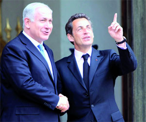 نتنياهو مع الرئيس الفرنسي نيكــــــــــــــــــــــــــــــــــولا ساركوزي في باريس. إي.بي.إيه