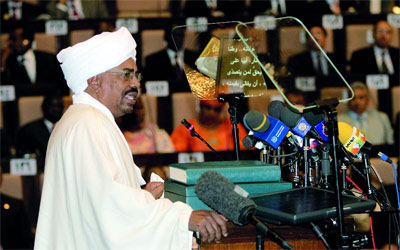 أكد الرئيس السوداني عمر البشير خلال أدائه اليمين الدستورية لولاية جديدة مدتها خمس سنوات، أمس، إيمانه بوحدة السودان والتزامه بدء حوار مع العواصم الغربية. وألقى البشير الذي يحكم السودان منذ 21 عاماً كلمة في المجلس الوطني (البرلمان) امام عدد من رؤساء الدول الاجانب والدبلوماسيين الغربيين.