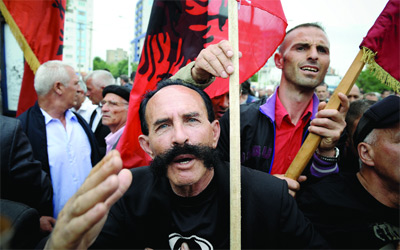 ويأتي هذا الانتشار بسبب تظاهرة شارك فيها آلاف الالبان ومقاتلون سابقون في نزاع 1998 و،1999 تجمعوا في جنوب المدينة للتنديد بتنظيم الصرب لانتخابات محلية في القسم الشمالي من الاقليم.