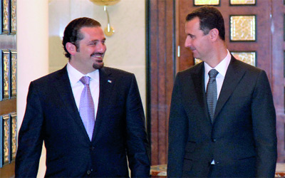 أطلع رئيس الوزراء اللبناني سعد الحريري، أمس، في دمشق الرئيس السوري بشار الأسد على نتائج زيارته إلى الولايات المتحدة والمواقف التي عبر عنها لبنان لإحلال السلام العادل. وقالت وكالة الأنباء السورية الرسمية (سانا)، إن الحريري أطلع الاسد على «نتائج زيارته الى الولايات المتحدة والمواقف التي عبر عنها لبنان لإحلال السلام العادل والشامل وفق المرجعيات الدولية وقرارات مجلس الأمن ذات الصلة».