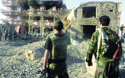 جنود أفغان يحيطون بمقر منظمة «ديفيلوبمنت الترناتيفز» الذي تعرض لهجوم في قندز. إي.بي.إيه بوكس