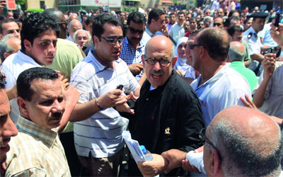البرادعي خلال زيارته الإسكندرية لتعزية عائلة الشاب خالد سعيد. أ.ف.ب - أرشيفية