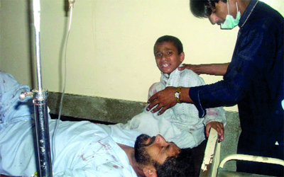 مصاب في الاعتداء يتلقى علاجاً في مينغورا. إي.بي.إيه