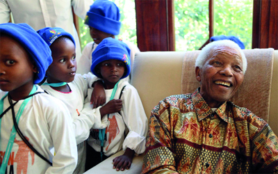 أطفال من جنوب إفريقيا يحتفون بعيد ميلاد زعيمها. رويترز