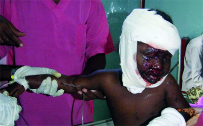 طفل مصاب بسقوط قذيفة على مدرسته. أ.ب