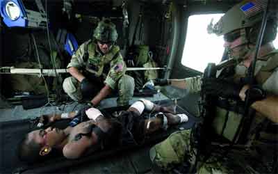 جنود أميركيون يسعفون طفلاً أفغانياً قطعت رجله بانفجار لغم. أ.ب