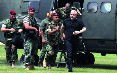 المر لدى وصوله لحضور تدريبات عسكرية شمال بيروت. غيتي