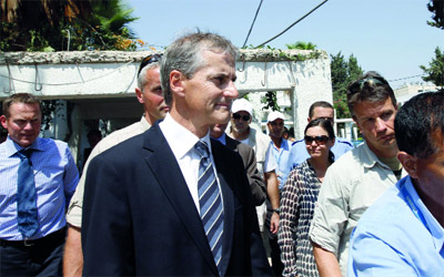 وزير خارجية النرويج يوناس شتور يؤكّد من غزة ضرورة مساندة الفلسطينيين مادياً. أ.ف.ب