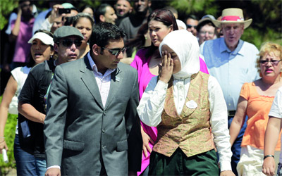 إيمان بدلال (وسط) اعترضت على قرار خلع الحجاب. أ.ب