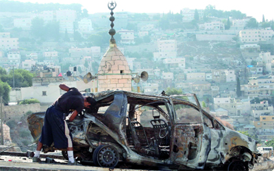 مواجهات بلدة سلوان أسفرت عن إحراق عدد من سيارات المستوطنين بعد اقتحامهم المسجد. إي.بي.أيه