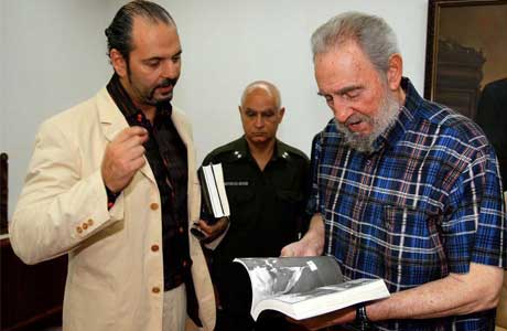 كاسترو خلال استقباله الكاتب الليتواني الأصل دانيال ايستولين في 27 الشهر الجاري-د.ب.أ