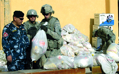 تجهيز مواد غذائية لتوزيعها في كركوك لتعزيز الأمن. أ.ف.ب