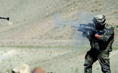 جندي فرنسي ضمن قوات «الأطلسي» خلال تدريبات في أفغانستان. أ.ف.ب