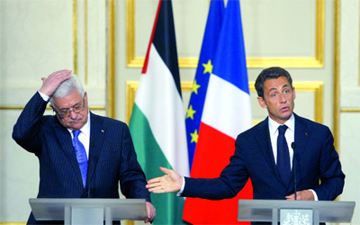 عباس وساركوزي اتفقا على ضرورة وقف الاستيطان لمنح المفاوضات الفرص كاملة. أ.ب