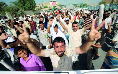 مسيرة لأنصار الصدر في الكوفة تأييداً لاختيار «التحالف» المالكي مرشحاً لرئاسة الوزراء. أ.ب