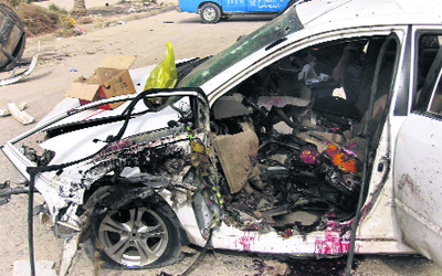 الشرطة تعاين سيارة استهدفت بتفجير في بغداد. أ.ب