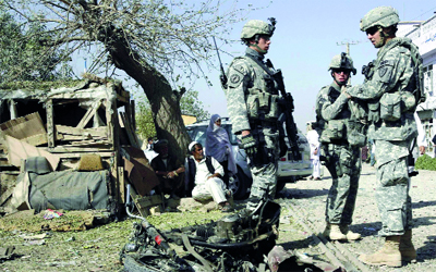 جنود أميركيون يعاينون مكان انفجار في قندهار. رويترز