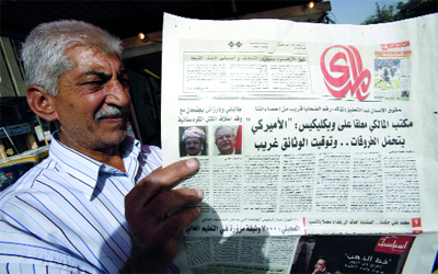 عراقي يطالع أخبار تسريبات «ويكيليكس» في إحدى الصحف. إي.بي.أيه