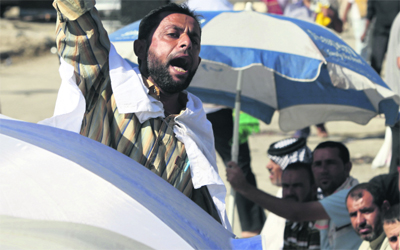 عراقي يهتف ضد أميركا عقب صلاة الجمعة في مدينة الصدر. أ.ب