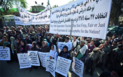 أفغان يتظاهرون ضد تزوير الانتخابات. أ.ف.ب