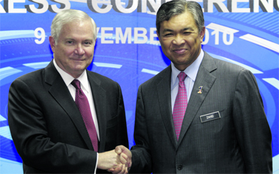 واجرى غيتس الذي يزور ماليزيا في اطار جولة في المنطقة لتعزيز العلاقات العسكرية، لقاءً مع وزير الدفاع الماليزي احمد زاهد حميدي.