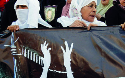 مسيرة في غزة تطالب بإطلاق الأسرى. أ.ب