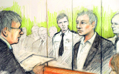 رسم تقريبي لأسانغ أمام المحكمة. أ.ب