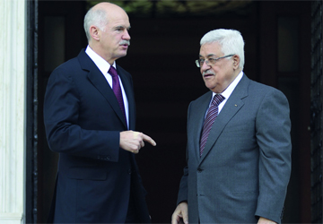 عباس قي لقائه باباندريو: نأمل بدور أوروبي قريب في عملية السلام. أ.ب