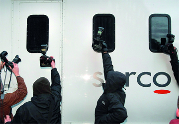 صحافيون يحاولون التقاط صـورة لأسانغ. غيتي