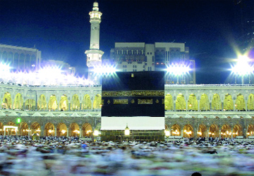 حجيج يقفون أمام الكعبة. أ.ب