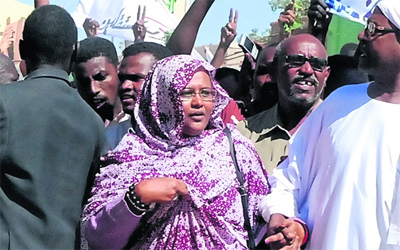 التاسع من يناير. وقالت المسؤولة في الحزب سارة نقدالله لـ«رويترز» إن الحزب عقد اجتماعاً في مقره، وحين غادر الأعضاء لأداء صلاة الجمعة اعتدت الشرطة عليهم بالهراوات والغاز المسيل للدموع، واضافت سارة، وشاهد، أن مريم ابنة الصادق المهدي المتحدثة باسم الحزب نقلت الى المستشفى بعدما ضُربت على رأسها وذراعها.