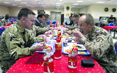 قائد قوة «إيساف» يتناول وجبة مع أفراد قوات الأطلسي في كابول. أ.ب